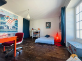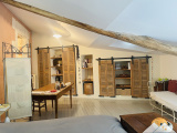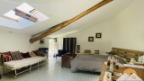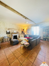 RDC : entrée, grand salon avec cheminée ouverte, cuisine séjour ouvrant sur le jardin, avec buanderie à l'arrière, chambre-bibliothèque, salle de bain et toilettes. Au 1er étage, un palier conduit à quatre très grandes chambres et à une salle d’eau-WC. Le confort global est assuré par des ouvertures en double vitrages, une isolation des toitures, et l'inertie de murs en pierres. Chaudière à gaz de ville, et cheminée assurent un confort douillet. Cette propriété est entièrement close par un mur d'enceinte, et un portail électrifié.